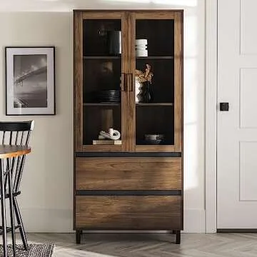Show moreIntroducing the Walker Edison Furniture Company Glass Door Storage Hutch, where elegance meets functionality in a stunning 68-inch design, perfect for any home decor. Crafted from high-quality materials, this hutch provides ample storage space while showcasing your favorite dishes or decorative items behind its gorgeous glass doors. The rich Dark Walnut finish adds a touch of sophistication, making it a versatile choice for your kitchen, dining room, or bedroom. With dimensions of 32.25" L x 15.75" W x 68.25" H and a sturdy weight of 123 lbs, this cabinet is built to last, providing stability and style. Ideal for your china, linens, or other essentials, it offers both practical storage solutions and a delightful visual appeal.