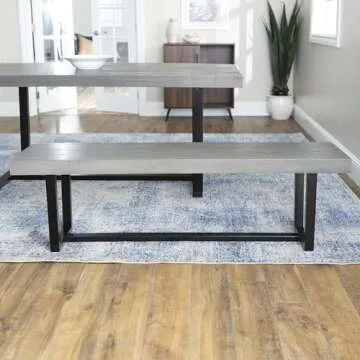 Walker Edison Industrial Farmhouse Wood Entryway Dining Kitchen Bench Kitchen Table Set Dining Chairs, 60 Inch, Grey