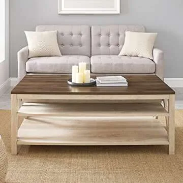 Walker Edison Modern Farmhouse A-Frame Wood Rectangle Coffee Table Living Room Ottoman Storage Shelf, 48 Inch, White Oak