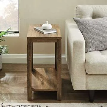Show moreWelcome the charm of modern design into your home with the Walker Edison Modern Farmhouse A-Frame Wood Rectangle Side Table. This beautifully crafted side table not only brings functionality to your living space but also serves as a stunning décor piece. Standing at a height of 25 inches, and measuring 22 inches wide by 13 inches long, it's perfectly proportioned to fit snugly beside your sofa or bed. The high-grade MDF and laminate table top are combined to ensure a long-lasting construction that can withstand everyday use, promising durability with style. Featuring a rustic oak finish, this side table offers a warm and inviting aesthetic that doesn't compromise on elegance, making it an ideal addition to any room.