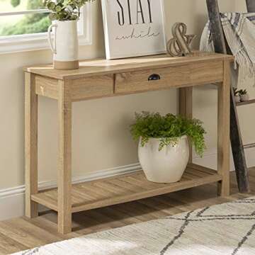 Walker Edison Rustic Wood Farmhouse Entryway Accent Storage Drawer Entry Living Room End Table, 48 Inch, Natural Brown