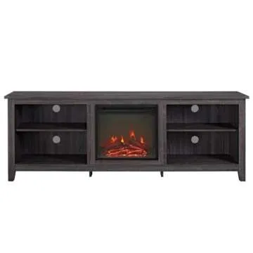 Show moreIf you’re searching for the perfect combination of style, functionality, and warmth, look no further than the Walker Edison Wren Classic 4 Cubby Fireplace TV Stand. Designed to accommodate televisions up to 80 inches, this 70-inch stand not only showcases your entertainment setup but also features a beautiful electric fireplace that provides both ambiance and heat. Crafted from durable materials, this stylish piece not only enhances your living space with its charcoal finish but also adds sophistication with its modern design, making it an attractive focal point in any room.