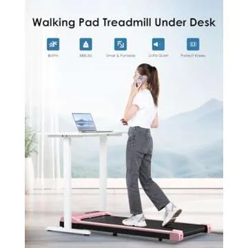 Walking Pad Treadmill Under Desk, 5MPH Small Portable Treadmill for Office & Home, Mini Quiet Compact, 2.5HP Flat Running Machine, 300 Lb Capacity, Pink