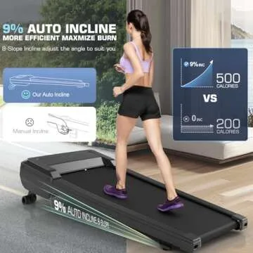 Walking Pad with 9% Auto Incline, ANCHEER 300LBS Weight Capacity Under Desk Tredamill with Remote Control for Home Office, Compact Treadmill 2.5HP/ LCD Display/ 8 Adjustable Slopes(Black)