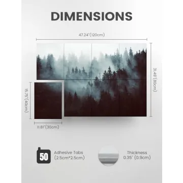 Show moreTransform your living or workspace with the Wall Art Acoustic Panels, a perfect blend of aesthetic charm and functional sound absorption. This stunning 8-pack of premium panels, featuring a serene foggy nature forest design, measures an impressive 47''x31'', providing ample coverage for effective noise dampening. Crafted from high-density felt, these panels not only serve to beautify your room but also excel in enhancing your acoustic environment. Whether you're in a bustling office, a recording studio, or a cozy home, these panels are designed to reduce echo and background noise, creating a focused and peaceful atmosphere.