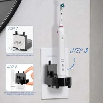 The charger includes strong adhesive tape, allowing it to stick securely to your bathroom wall socket for stability.