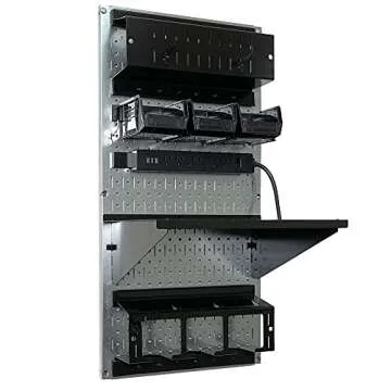 Wall Control Power Tool Storage Organizer Kit Cordless Drill Holder Charging Station Rack 16” x 32” Metal Pegboard Organization System (Metallic Pegboard)