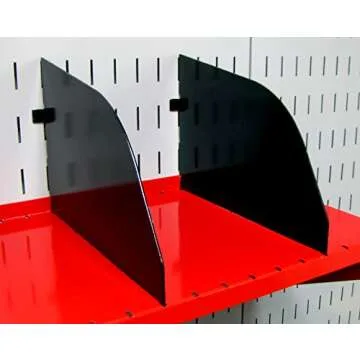 Show moreIntroducing the Wall Control Shelf Divider for 9-inch deep pegboard shelves – the ultimate solution for your organization needs! Manufactured with high-quality metal, this shelf divider is designed to provide unparalleled strength and durability while maintaining a sleek aesthetic. Whether you're a DIY enthusiast, a professional in need of a tidy workspace, or simply someone looking to reduce clutter, this product is perfect for you. With a baked-on color finish, it not only looks fabulous but also resists rust and wear, ensuring it stands the test of time.