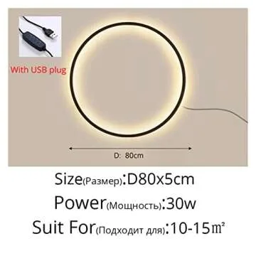 Wall lamp, Simple Circle Background Decoration Lamps Modern LED Wall Lights Living Room Bedroom Bedside Aisle Corridor Indoor Lighting (Color : A Black 80cm, Size : 3Colors No Remote)