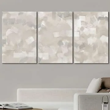 wall26 Canvas Print Wall Art Set Gray, White & Tan Paint Smudge Display Abstract Shapes Illustrations Modern Art Bohemian Colorful Multicolor Ultra for Living Room, Bedroom, Office - 16"x24"x3 Panels