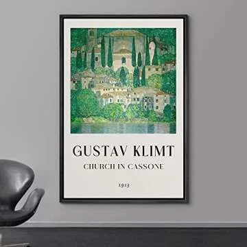 wall26 Framed Canvas Print Wall Art Church in Cassone by Gustav Klimt Nature Wilderness Illustrations Fine Art Farmhouse/Country Decorative for Living Room, Bedroom, Office - 24"x36" Black