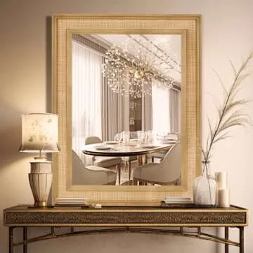 WallBeyond Rattan Wall Mirror Rectangle, 27 X 34 inch Rattan Mirror with Wooden Framed for Wall Decor Bathroom, Living Room, Entryway, Farmhouse, Bedroom