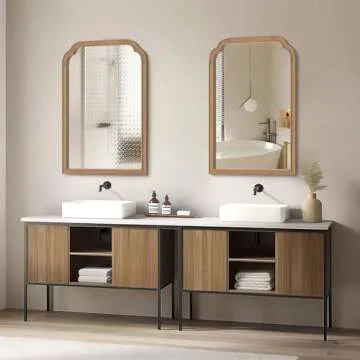 WallBeyond Wood Frame Wall Mirror Rounded Corner Arch Rectangle Mirror for Entryway, Living Room or Bedroom Home Decor - Light Woodgrain [20" x 30" Honey-Colored]
