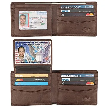 Show moreIntroducing a wallet that not only meets the practical needs of daily life but also embodies elegance and durability, this genuine leather bifold wallet is crafted from precious vegetable tanned cowhide leather. This leather is not just luxurious; it is crafted using natural ingredients, making it environmentally friendly and ethically sourced. Its smooth texture offers a soft and comfortable touch that you will appreciate every time you reach for it. The wallet features an impressive design with 2 ID windows, allowing for quick and easy access to your important identification while you're on the go. Coupled with 8 card slots and extra space behind each slot, it provides ample room for your everyday essentials, ensuring you can keep everything organized without bulking up your pocket.