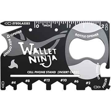 Wallet Ninja Multitool Card – 18 in 1 Credit Card Multi-Tool (Bottle Opener, Can Opener, Screwdrivers, Phone Stand & More) – Black