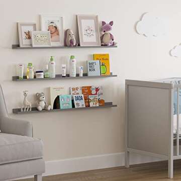 Enhance your child’s living space and creativity with the Wallniture Denver 46" Floating Shelves. This elegant set of 3 gray ledge shelves is not just a storage solution; it's an opportunity to showcase cherished books, toys, and precious memories. The stylish MDF construction ensures durability while providing a modern aesthetic that effortlessly complements any room. Perfect for nurseries, playrooms, or hallways, these shelves allow you to curate a delightful display that highlights your...