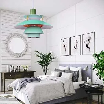 Show moreIlluminate your space with the stunning WalmHomie 1 Lighting Nordic Pendant Light, a minimalist hanging lamp that perfectly combines form and function. Crafted with precision and an eye for design, this pendant light is an ideal choice for those looking to enhance their interior decor. Its sleek, modern aesthetic seamlessly fits into any environment, from coffee bars to cozy dining spaces, making lighting a focal point of your home. With an elegant green finish, this lamp not only provides superb lighting but also serves as a statement piece in your home decor.