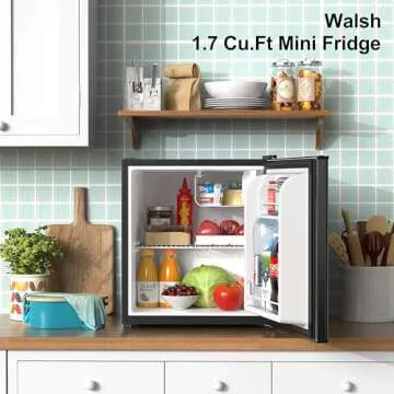 Its dimensions of 17.48” W x 19.09” D x 19.49” H make it compact yet spacious enough for a variety of items. Whether it’s soda cans, lunches, or frozen pizzas, this mini fridge has the storage capabilities to meet your needs without compromising on space.