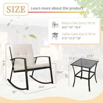 Show more Introducing the ultimate in outdoor relaxation—the beautiful All-weather Wicker Bistro Set from Walsunny. Crafted from durable black synthetic resin, this wicker patio set is designed to withstand the elements, boasting impressive weather and UV resistance. Whether you’re sipping morning coffee or unwinding with an evening glass of wine, the elegant glass top side table perfectly complements the thick cushioned rocking chairs that promise to envelop you in comfort.