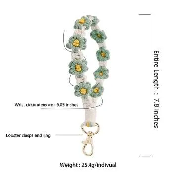 WALXINK Flower Handmade Wristlet Keychain for Women with Key Ring Macrame Lanyards for Car Keys
