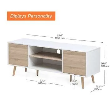 Show moreIntroducing the WAMPAT Mid Century Modern TV Stand - your ultimate solution for stylish storage and organization! Perfectly designed to support TVs of up to 60 inches, this captivating console blends elegance and functionality. Crafted from high-grade particle board, its sturdy construction not only promises longevity but also features a smooth, waterproof finish that’s easy to maintain. Measuring 53.1 inches in length, 15.6 inches in width, and 20.9 inches in height, this TV stand provides ample space for all your media equipment, games, and even your favorite décor items, making it a must-have centerpiece for your living room or bedroom.