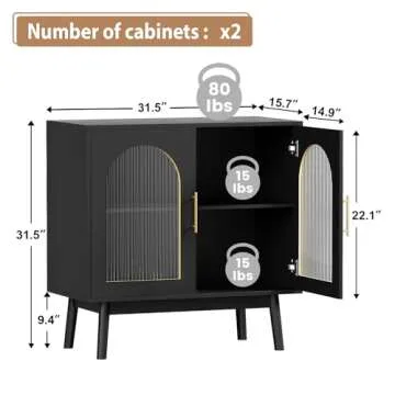 Wananlanen Sideboard Cabinet Buffet Cabinet with Storage Kitchen Accent Cabinet with Glass Doors Black Modern Storage Cabinet for Living Room, Entryway, Kitchen, Dinning Room, Hallway(Set of 2)