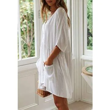 Wander Agio Beach Swimsuit for Women Sleeve Coverups Bikini Cover Up Shirt Button Pocket Down Skirt White