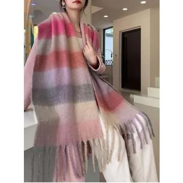 Show more Experience the perfect blend of style and comfort with our luxurious large plaid scarf shawl! Measuring an impressive 95L x 15W inches, this plush accessory is crafted from high-quality yarn and cotton processing, ensuring a soft, warm feel against your skin. The innovative design makes it not just a fashionable scarf but also a functional blanket wrap, providing full coverage for warmth during chilly winter months.