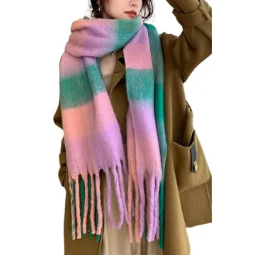 This winter essential not only serves as a reliable barrier against frosty temperatures but also enhances your fashion quotient with endless styling options. With its thick, durable knit and vivid shades of purple and grass green, this scarf promises to be a cherished item in your closet for many winters to come. **Softness** and rich color are highly praised features, providing both warmth and chic elegance that will make heads turn.