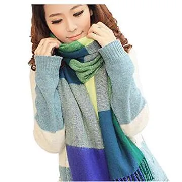 Wander Agio Women's Fashion Long Shawl Big Grid Winter Warm Large Scarf Green