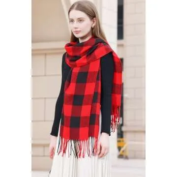 Wander Agio Women's Fashion Long Shawl Winter Warm Lattice Large Scarf Small Plaid Red Black