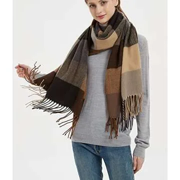 Wander Agio Womens Fashion Long Shawl Big Scarves Grid Winter Warm Large Plaid Scarf Coffee 6
