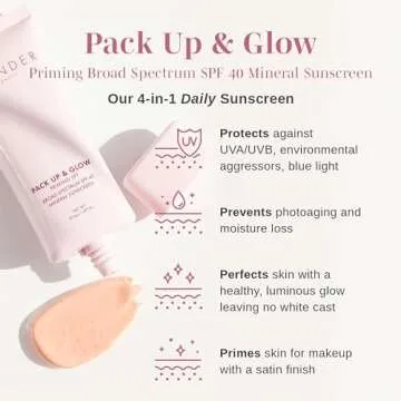 Wander Beauty Pack Up & Glow Primer with SPF 40 - 100% Mineral Sunscreen with Non-Nano Zinc Oxide + Titanium Dioxide - 4-in-1 Universal Tinted Sunscreen - Protect, Prevent, Perfect & Prime - 1.69 oz