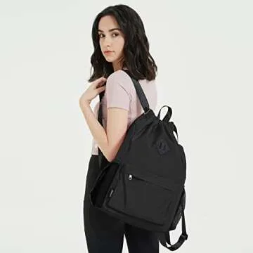 WANDF Drawstring Backpack Sports Gym Bag with Shoes Compartment, Water-Resistant String Backpack Cinch for Women Men (Large,Black)