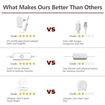 Your satisfaction is guaranteed with our reliable and trusted product. Crafted from premium materials, every component, from the 12V constant-current adapter to the sensitive touch dimmer with overload protection, is certified to ensure safety and durability. We are proud to offer a lifetime free replacement warranty on our vanity light kit, so you can rest assured your investment is protected.