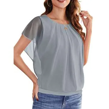 WANGZHI Women's Loose Casual Short Sleeve Front Pleated Chiffon Top T-Shirt Blouse (Grey,X-Large)