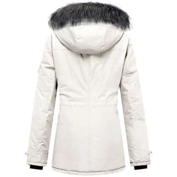 Wantdo Ladies' Winter Coat Quilted Thicken Parka Jacket with Fur Trim (Beige, XX-Large)