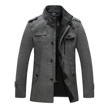 Elevate your winter wardrobe with the Wantdo Men's Casual Coat, a masterpiece of warmth and style. Crafted from high-quality wool blend, this overcoat is designed to brave the coldest days with its medium-thick and extra-thick options, ensuring you're prepared for any weather. The herringbone pattern and stand-up collar not only add a touch of modernity but also pay homage to classic overcoat styles, making it a versatile piece for any occasion.