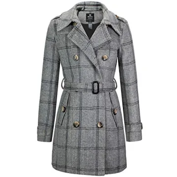 Wantdo Women's Stylish Plaid Peacoat - Double Breasted Trench Coat