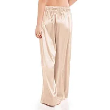 Wantschun Womens Wide Leg Pajama Pants Satin Silk Casual Loose Elastic Waist Lounge Pants Pj Bottoms Longer Length - Champagne ; M