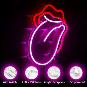 Wanxing Lips Neon Sign Red Led Sign Big Tongue Neon Lights Sexy Neon Signs for Wall Decor USB Powered Switch Light up Sign Neon Lights for Bedroom Living Room Christmas Party Decoration