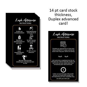 Wanyeer Lash Extension Aftercare Instructions Cards,50 Pack Double Sided Size 3.5 x 2inch inch 50 Pack Business Card Size, AfterCare Card, Lash Care Card, Black with White Design