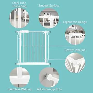 WAOWAO Extra Wide Baby Gate 57.48"-62.20" Walk Thru Pressure Mount Auto Close White Metal Child Dog Pet Safety Stairs,Doorways,Kitchen