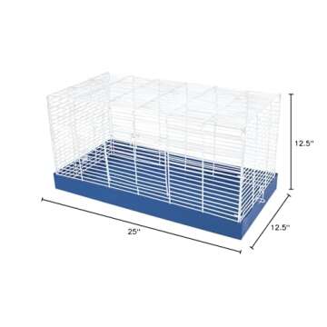 Measuring a convenient 25 inches in width and height, this cage provides a spacious interior, optimized for small pets like Syrian hamsters, gerbils, or baby rats. It features 1/2 inch wire spacing to ensure safety, giving you peace of mind as you watch your pets explore their new home. The easy-clean all-metal drop pan allows your pet's environment to stay sanitary without the hassle of complicated cleaning routines.