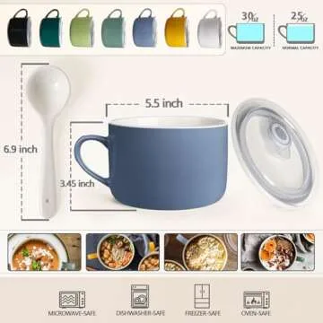Introducing the **Wareland Soup Bowls with Handles & Spoons**, a versatile addition to your kitchen essentials set that redefines mealtime. These beautifully crafted 30oz ceramic bowls are designed to elevate your dining experience, whether it's a cozy evening at home, a family gathering, or a friend's party. The stunning sky blue color adds a modern touch, making them perfect for a range of culinary delights – from hearty soups and stews to refreshing salads and satisfying cereals. Seamlessly combine function...