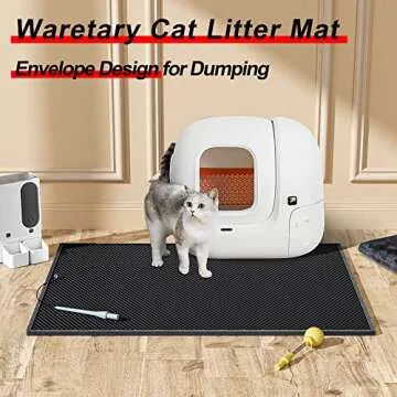 Waretary Cat Litter Mat, 30" X 24" Litter Trapping Mat, Double Layer Honeycomb Litter Box Mat, Urine & Waterproof Kitty Litter Mat, Scatter Control Easy Clean (Black)