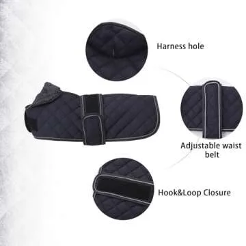 Warm Thermal Quilted Dachshund Coat, Dog Winter Coat with Warm Fleece Lining, Outdoor Dog Apparel with Adjustable Bands for Medium, Large Dog-Dark Blue-S