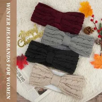 Warm Winter Headbands for Women Cable Crochet Turban Ear Warmer Headband Gifts with Plush, Double Twist Multicolour 1(4 Pack)