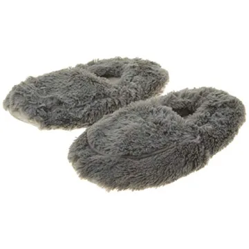 warmies Microwaveable House Slippers for Women - Womens Shoe Sizes 6-10 - Plush, Soft & Fuzzy Indoor Slippers with Backs & Non-Slip Memory Foam Soles - Cozy Warn Ladies Slipper for Winter - Gray