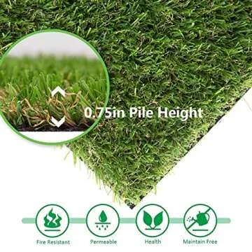 WarmShe 0.8inch Realistic Synthetic Artificial Grass Turf Thick Fake Faux Grass Rug Astroturf Carpet 3.3FTX5FT Indoor Outdoor Balcony for Indoor Outdoor Pets Garden Backyard, with Drainage Holes